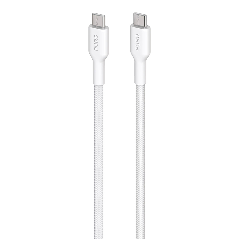 PURO Fabric - Odolný opletený kabel USB-C na USB-C 1,2 m (bílý)