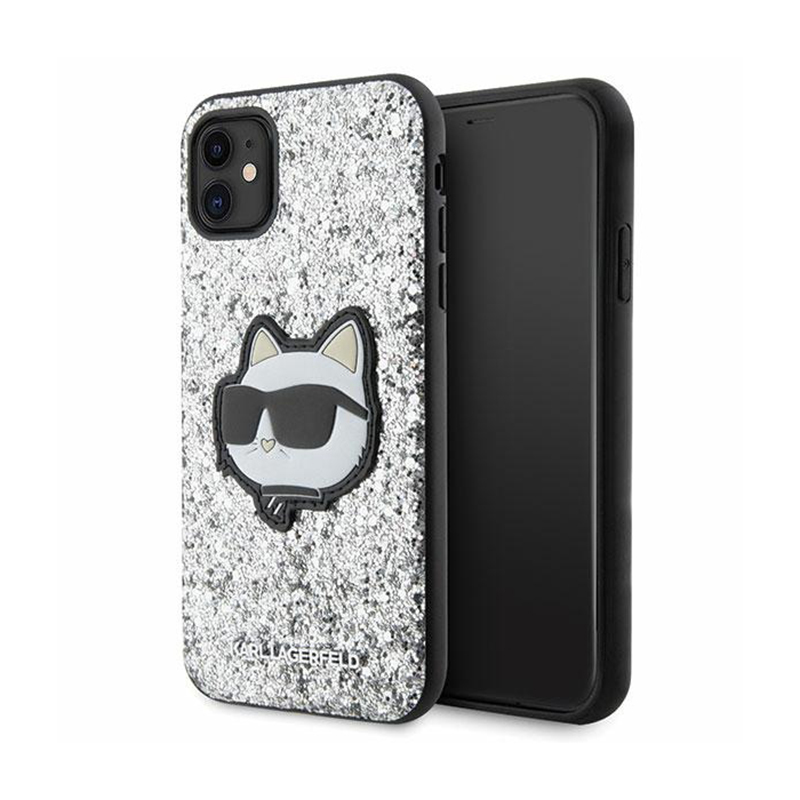 Karl Lagerfeld NFT Glitter Choupette Patch - pouzdro pro iPhone 11 (stříbrné)