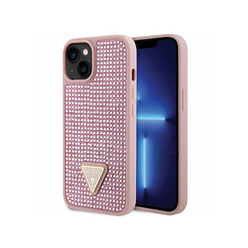 Guess Rhinestone Triangle - pouzdro pro iPhone 14 Plus (růžové)