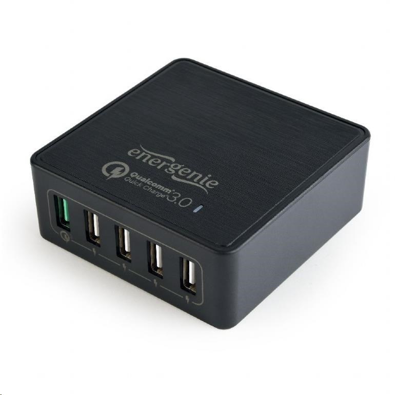 GEMBIRD rychlonabíječka USB QC3.0, 5x USB, 1,5A, quick charge, černá