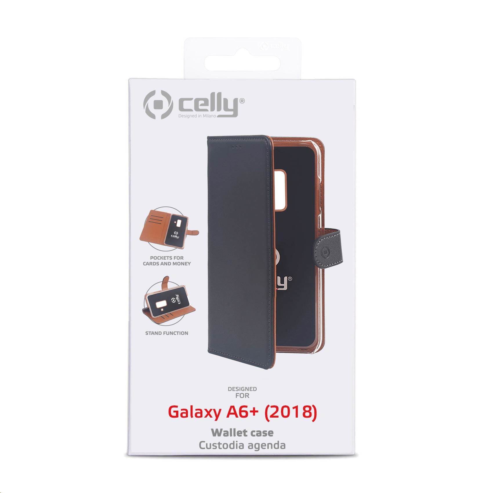 Celly pouzdro Wally s funkcí stojánku pro Samsung Galaxy A6+ 2018, černá