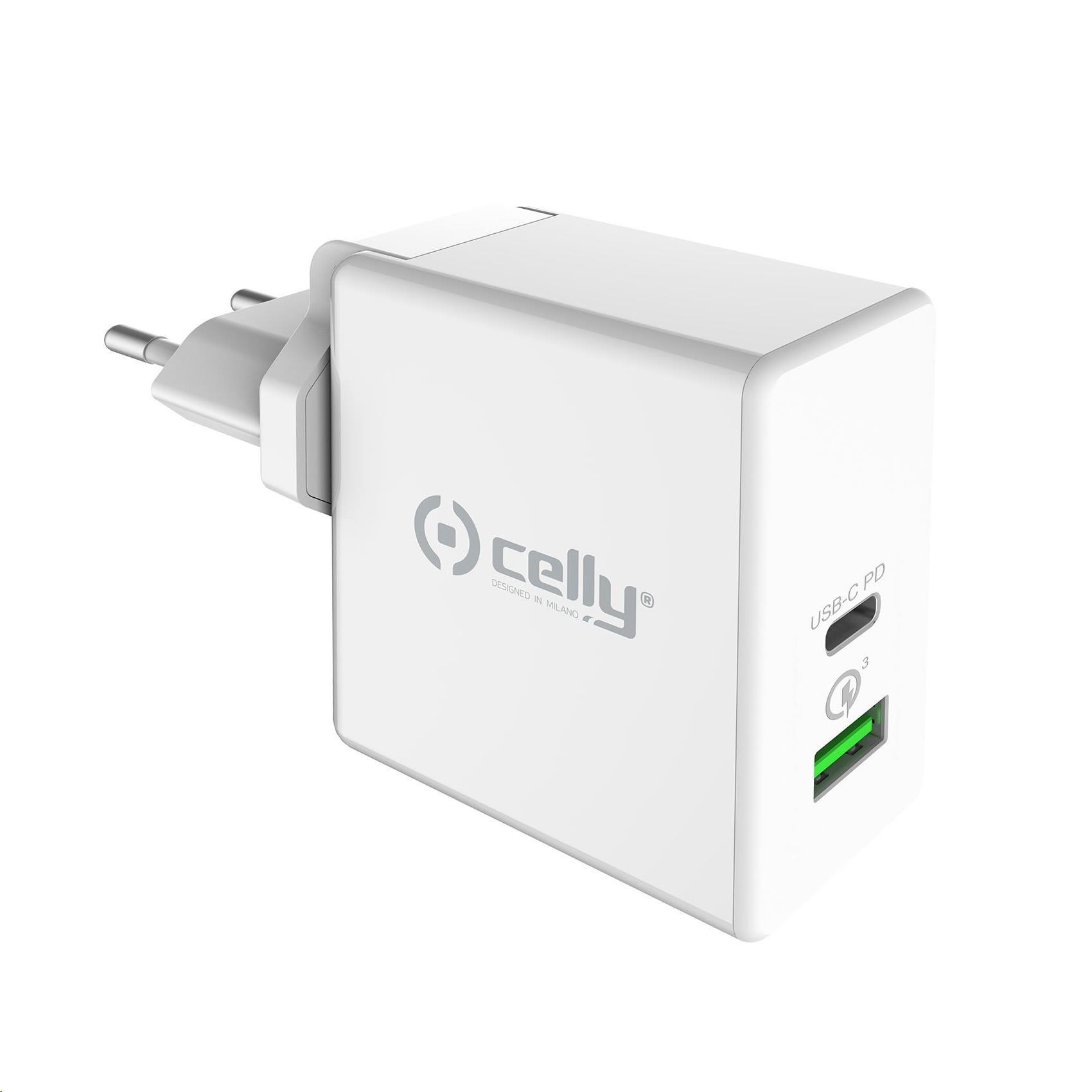 Celly nabíječka do sítě, 1x USB, 1x USB-C, 45 W, bílá przeczytaj całość