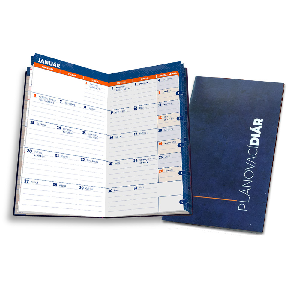 Mesačný plánovací diár obsahuje 48 strán v slovenskom jazyku.Okrem kalendára obsahuje listy:Meno /Adresa /Telefón /Mail (podľa abecedy) Termíny ročné Ordinačné hodiny Poznámky Bus /Vlak odchody Prehľadný kalendár na nasledujúci rok- 80g bezdrevý papier - obal z pevnej lepenky przeczytaj całość