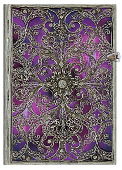 Zápisník - Silver Filigree Aubergine Midi Lined
