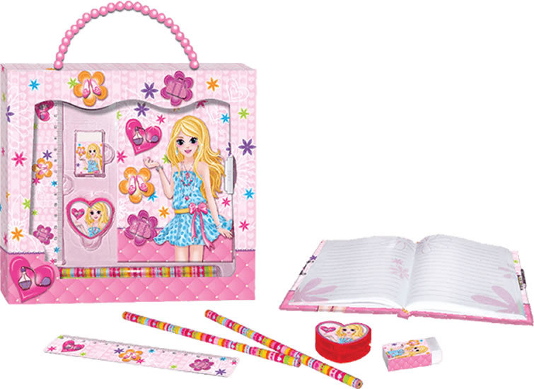 Dárková sada s diářem – dívka. Sada obsahuje: diář se zámkem, pravítko, gumu, ořezávátko a 2 tužky. przeczytaj całość