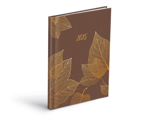 Týdenní diář pro rok 2025 ve formátu A5, v hnědé barvě, s motivem listů, který je výborným pomocníkem pro organizování Vašeho času. Diář má odtrhávatelný spodní rožek, který umožní rychlé nalistování aktuálního týdne. Povrch obálky je vyroben z lesklého lamina. przeczytaj całość