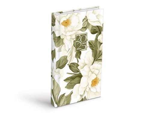 Denní diář pro rok 2025 s elegantním motivem bílých květů. Tento diář je ideálním pomocníkem pro organizaci vašeho času. Povrch je vyroben z lesklého lamina, což mu dodává luxusní vzhled a zajišťuje příjemný dotek. Navzdory kompaktním rozměrům nabízí dostatek místa na všechny vaše poznámky a plány. przeczytaj całość