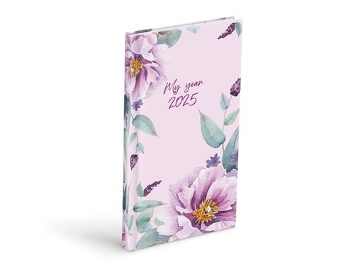 Týdenní diář pro rok 2025 ve světle fialové barvě, s motivem květů. Je výborným pomocníkem při organizování Vašeho času. Povrch obálky je vyroben z lesklého lamina. Diář má odtrhávatelný spodní rožek, který umožní rychlé nalistování aktuálního týdne. przeczytaj całość
