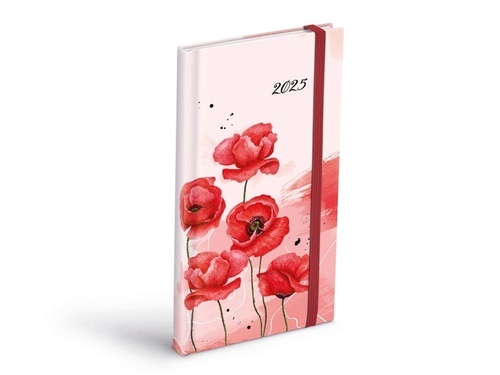 Týdenní diář pro rok 2025 s motivem květů vlčího máku, s uzavíráním na gumičku. Je výborným pomocníkem při organizování Vašeho času. Povrch obálky je vyroben z lesklého lamina. Diář má odtrhávatelný spodní rožek, který umožní rychlé nalistování aktuálního týdne. przeczytaj całość