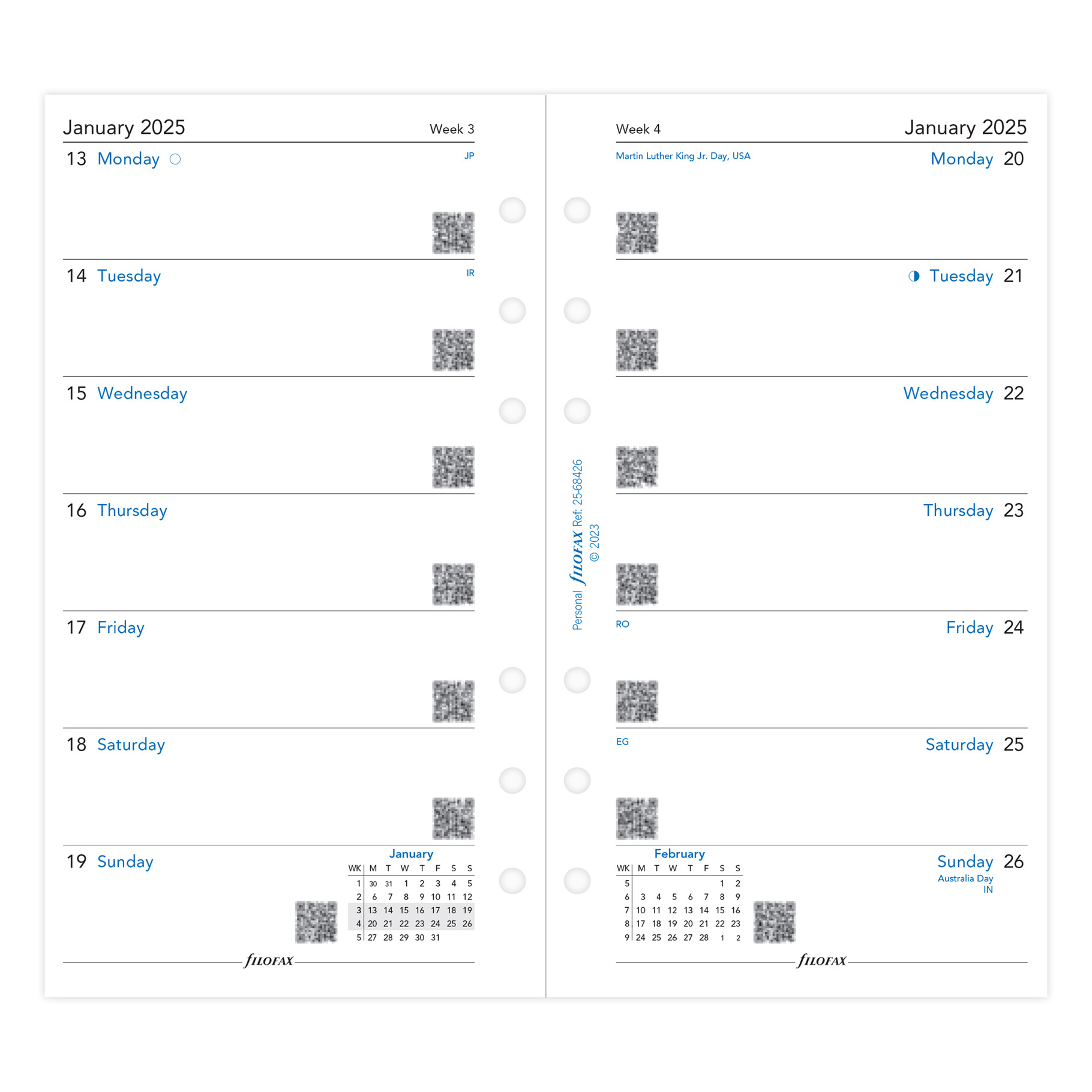 Filofax, Kalendář 2025 osobní, týden/1 strana, AJ