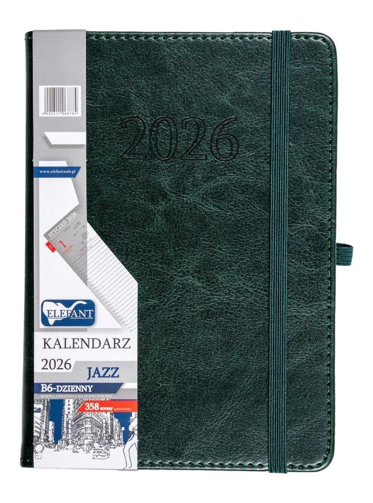 Kalendarz 2026 B6 dzienny Jazz zielony