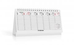 "Kalendarz biurkowy typu namiot, kalendarium w układzie miesięcznym, 54 strony + okładka. Na spirali, papier w środku kreda mat. Wymiary 250x110 mm" przeczytaj całość