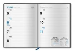 Kalendarz książkowy w twardej oprawie ze wstążką. Układ kalendarium tygodniowy. 128 stron. Wymiary 115x155 mm przeczytaj całość