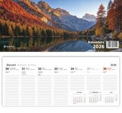 Mix wzorów. Towar wysyłamy losowo.Wymiar: 29,5 x 12,2cmIlość stron 56 stron.Kolorystyka czarno-czerwony.Papier środek 70g/m2; okładka kreda błysk 90 g/m2.Kalendarium tydzień na jednej stronie, w dolnym rogu skrócony kalendarz trzech miesięcy.Wykończenie spirala biała, podstawka o profilu...