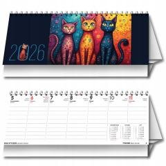 Kalendarz 2026 biurkowy tygodniowy poziomy koty
