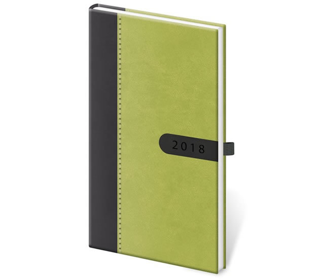 Diář 2018 - Bora/týdenní/kapesní/ zeleno/černá s poutkem na propisku