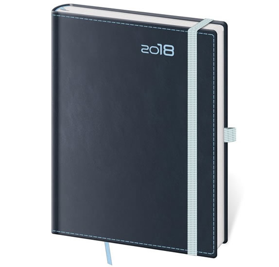 Diář 2018 - Double Blue/týdenní B6 s gumičkou a poutkem na propisku