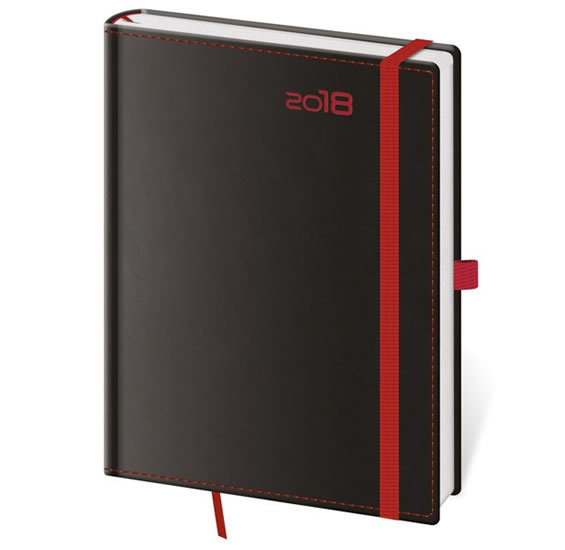 Diář 2018 - Black Red/týdenní B6 s gumičkou a poutkem na propisku