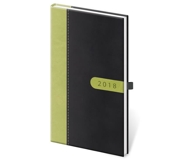 Diář 2018 - Bora/týdenní/kapesní/černo/zelená s poutkem na propisku