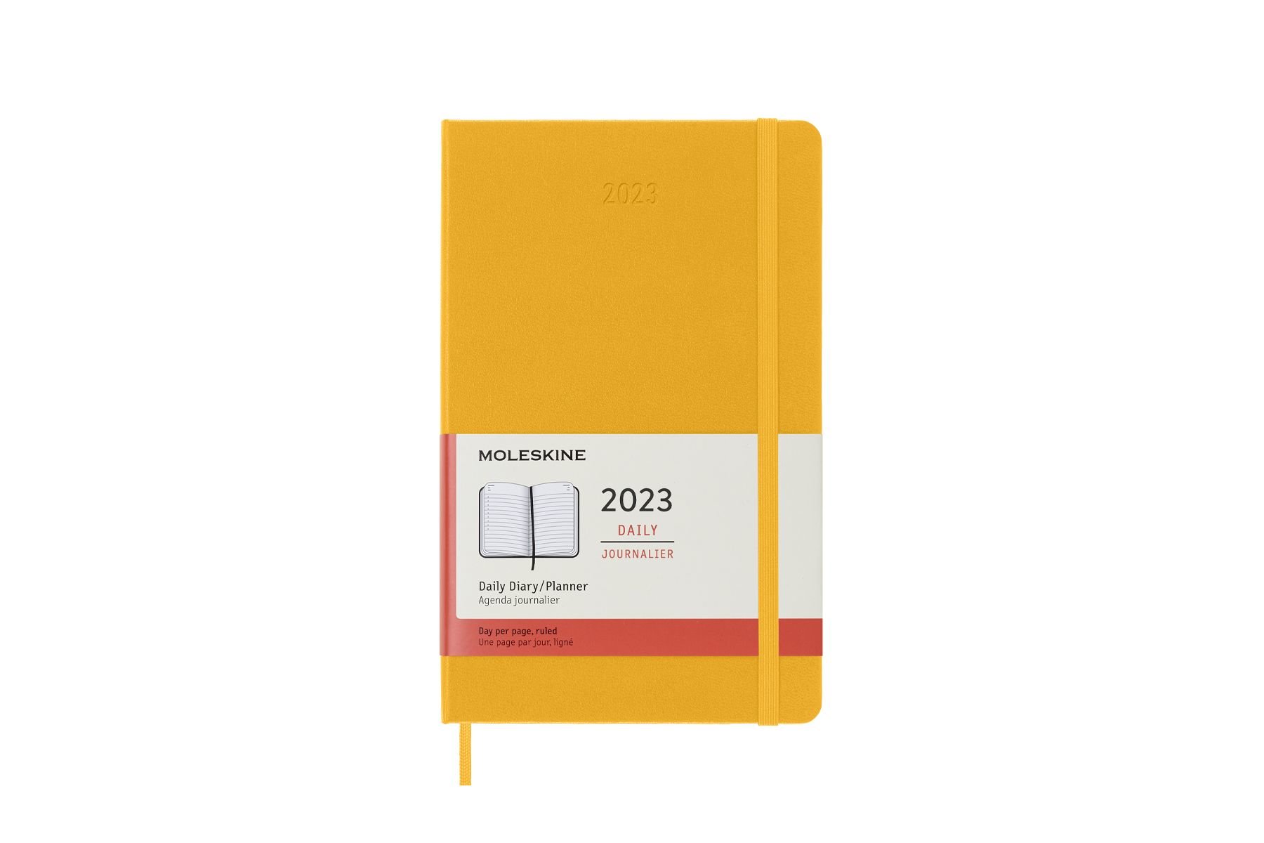 Klasický velký oranžový denní diář na rok 2023. Na každý den stránka pro poznámky a schůzky. Diář má pevnou, ve hřbetu šitou vazbu v kartonových deskách. Obepíná ho pružná páska proti samovolnému otevírání. Obsahuje praktickou vnitřní kapsu na vizitky a dokumenty, textilní záložku a 295 barevných samolepek. Papír s gramáží 70 g/m2neobsahuje kyseliny.