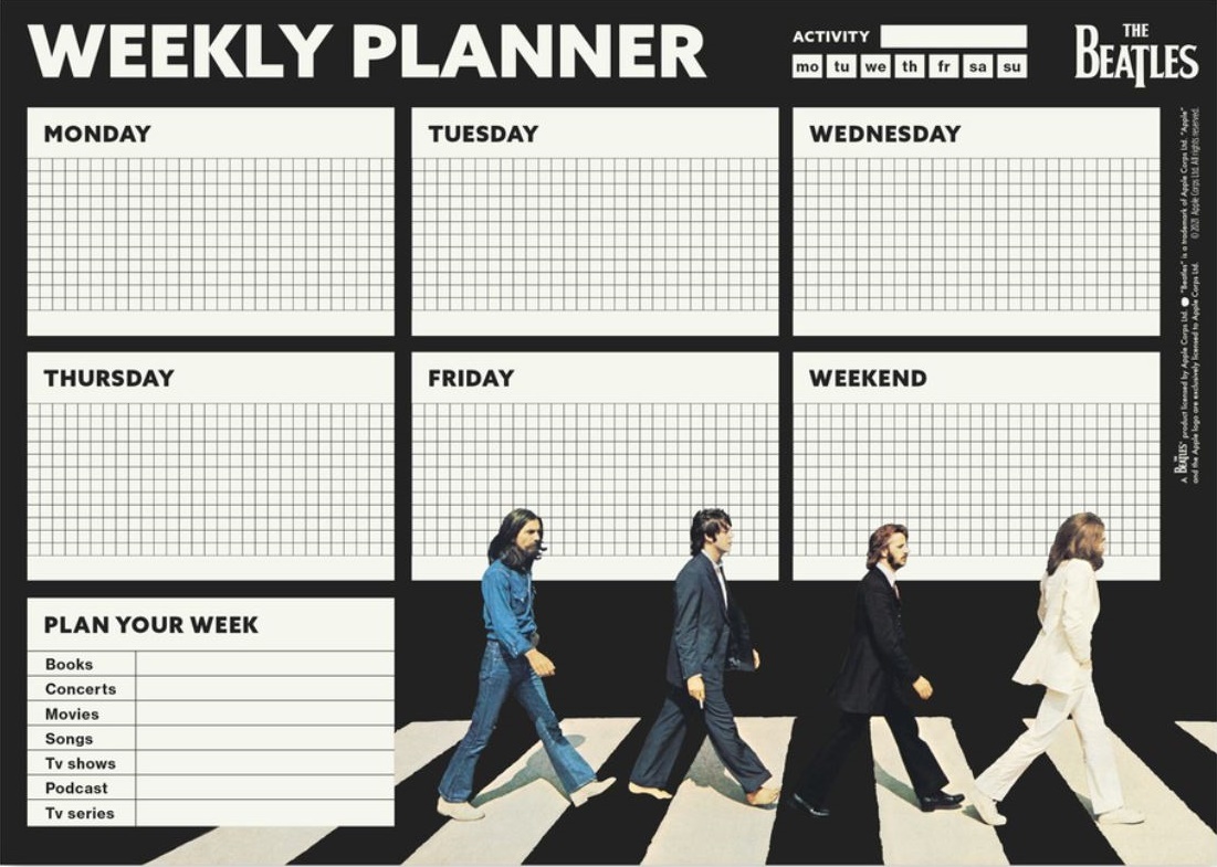 Oficiální stolní plánovač z katalogu kancelářských a dárkových produktů s grafikou, fotografiemi a licencí populární anglická rocková skupina The Beatles. Zboží je legálně licencováno a prodáváno se souhlasem vlastníků licenčních práv.Stolní týdenní plánovací blok s 54 listy na všech 12 měsíců,...