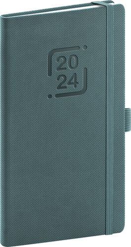 Kapesní diář Catanella 2024 v netradiční modrošedé barvě. Povrch s jemnou strukturou připomínající výbrus diamantu je vhodný pro všechny typy ražeb. Diář má zakulacené rohy, poutko na tužku a elastickou gumičku, sloužící k pevnému uzavření. • kalendárium od prosince 2023 • místo pro osobní údaje...