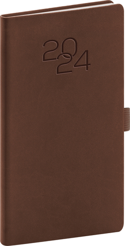 Kapesní diář Vivella Classic 2024 v klasické hnědé barvě s dominantní ražbou letopočtu. Povrch diáře je imitací kůže a lze do něj snadno razit i firemní logo. • kalendárium od prosince 2023 • měsíční plánovací kalendář 2024 • měsíční plánovací kalendář 2025 • roční plánovací kalendář 2024-2025 •...