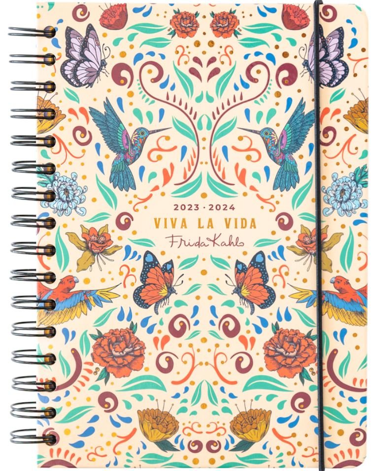 Oficiální produkt - A5 12měsíční školní diář v kroužkové vazbě na rok 2023/2024 z katalogu kancelářských a dárkových produktů s grafikou, motivem a licencí designérky Frida Kahlo. Zboží je legálně licencováno a prodáváno se souhlasem vlastníků licenčních práv.Plánovací týdenní 12měsíční školní...