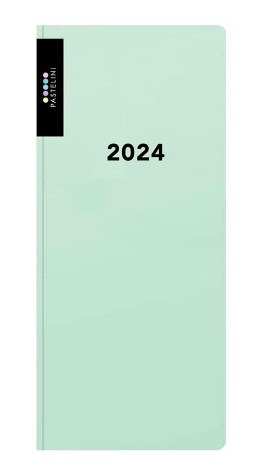 Diář PVC týdenní z oblíbené edice Pastelini. PVC + UV lak. Rozměr: 90,5 x 160 x 4 mm, 80 stran. INFO STRANY OBSAHUJÍ: · přehledný kalendář 2024 · pracovní kalendář 2024 · pracovní kalendář 2025 · měsíční přehled 2024 · prostor na poznámky KALENDÁRIUM: · týdenní kalendárium listopad 2023 – prosinec 2024 · dny a měsíce v 6 jazycích (CZ, SK) · číslo týdne · cz křestní jména · cz státní svátky · měsíční fáze