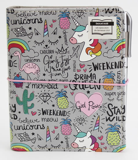 Elegantní školní diář s týdenním kalendáriem od poloviny srpna 2020 do konce června 2021. S kroužkovou vazbou a praktickými kapsičkami na vizitky, s pravítkem a propiskou. Gumička udrží tento diář s příjemným povrchem vždy bezpečně zavřený. Počet stran 128.