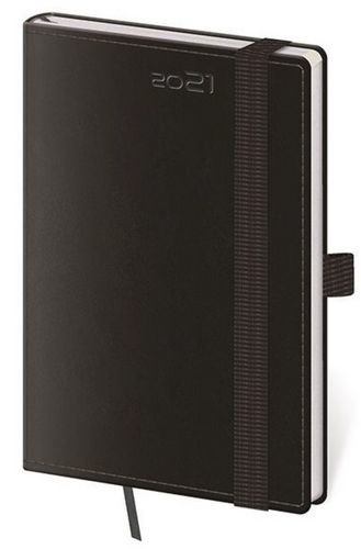 Diář 2021: Double Black, kapesní týdenní, 90x140, s poutkem na propisku