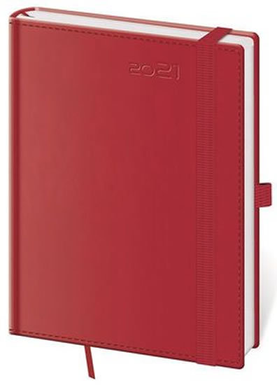 Diář 2021 týdenní B6 double Red s poutkem na propisku