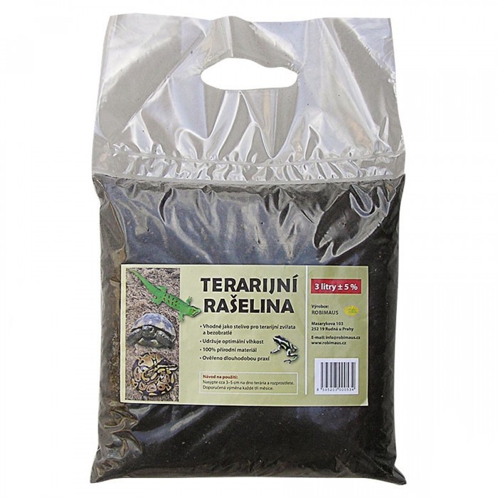 Terarijní rašelina ROBIMAUS je osvědčená terarijní podestýlka pod mnoho druhů terarijních zvířat, kterými jsou například žáby, obojživelníci, pavouci, šneci, bezobratlí. Je vhodná i pro další zvířata obývající spodní patra tropického deštného pralesa nebo vlhké subtropické lesy (chameleony,...