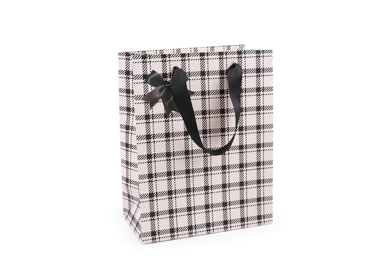 Dárková taška káro s mašlí - 4 ks - 4 krémová nejsvět.