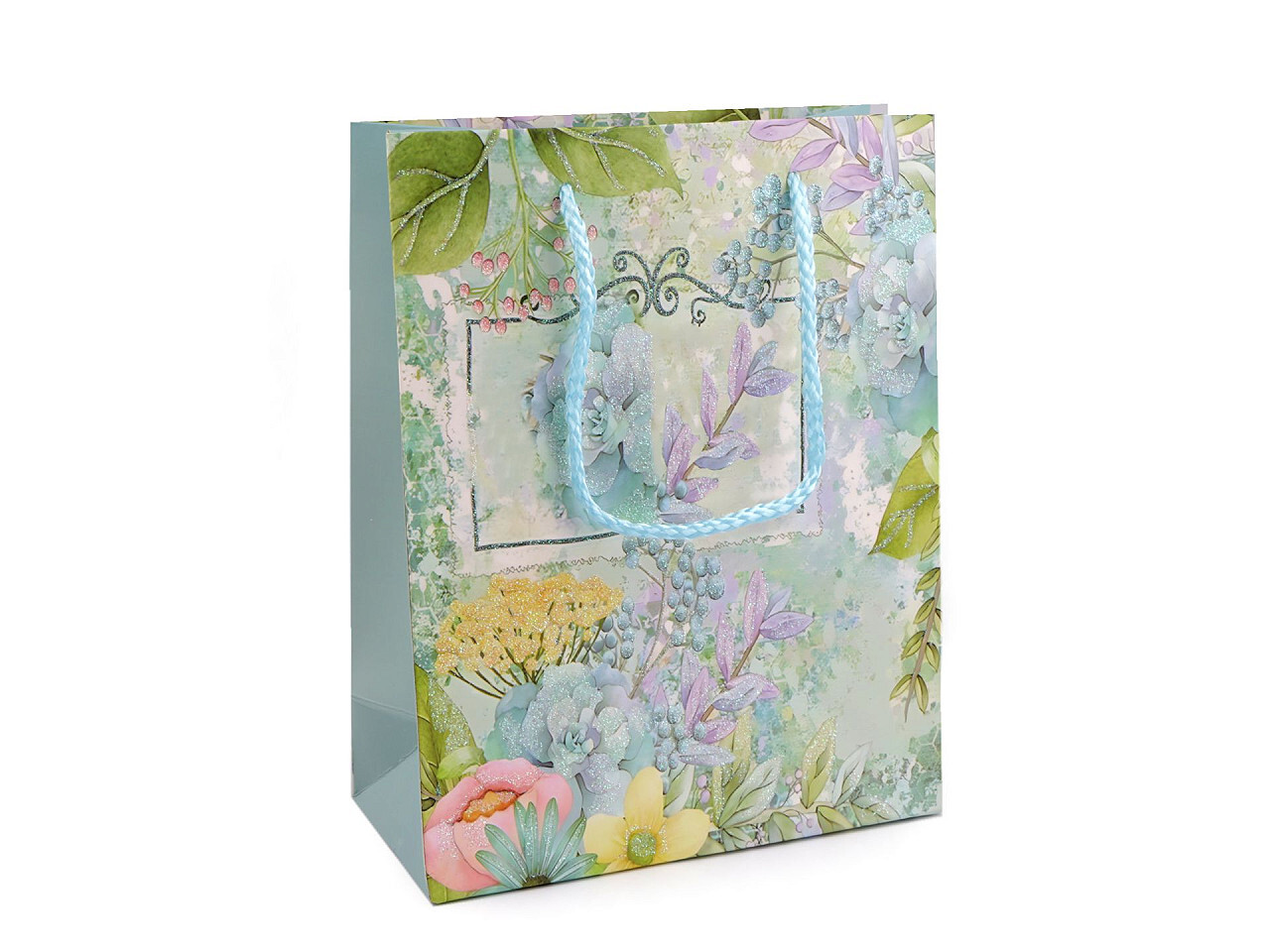Dárková taška s glitry květy - 4 ks - 4 mentolová