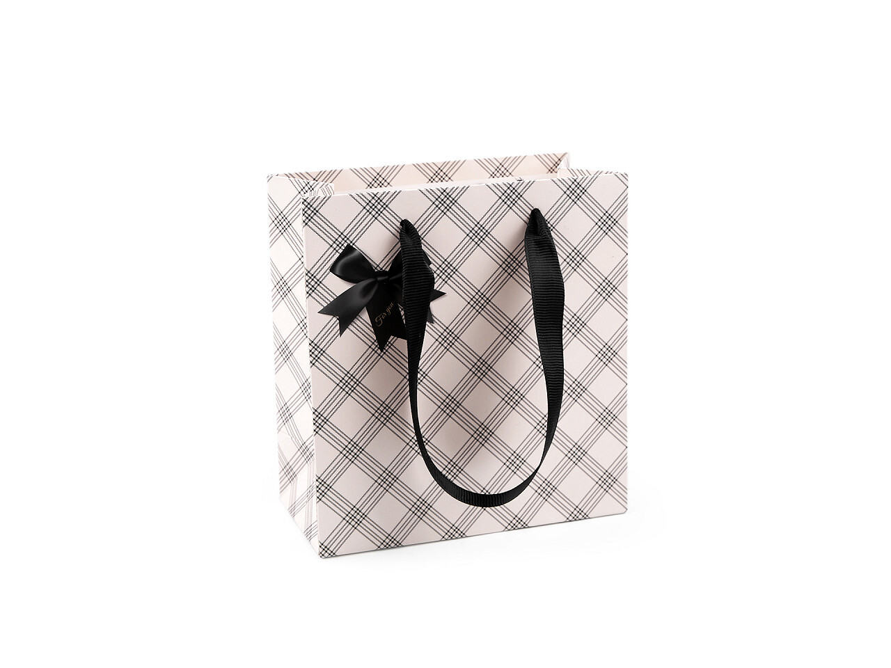 Dárková taška káro s mašlí - 12 ks - 2 krémová nejsvět.