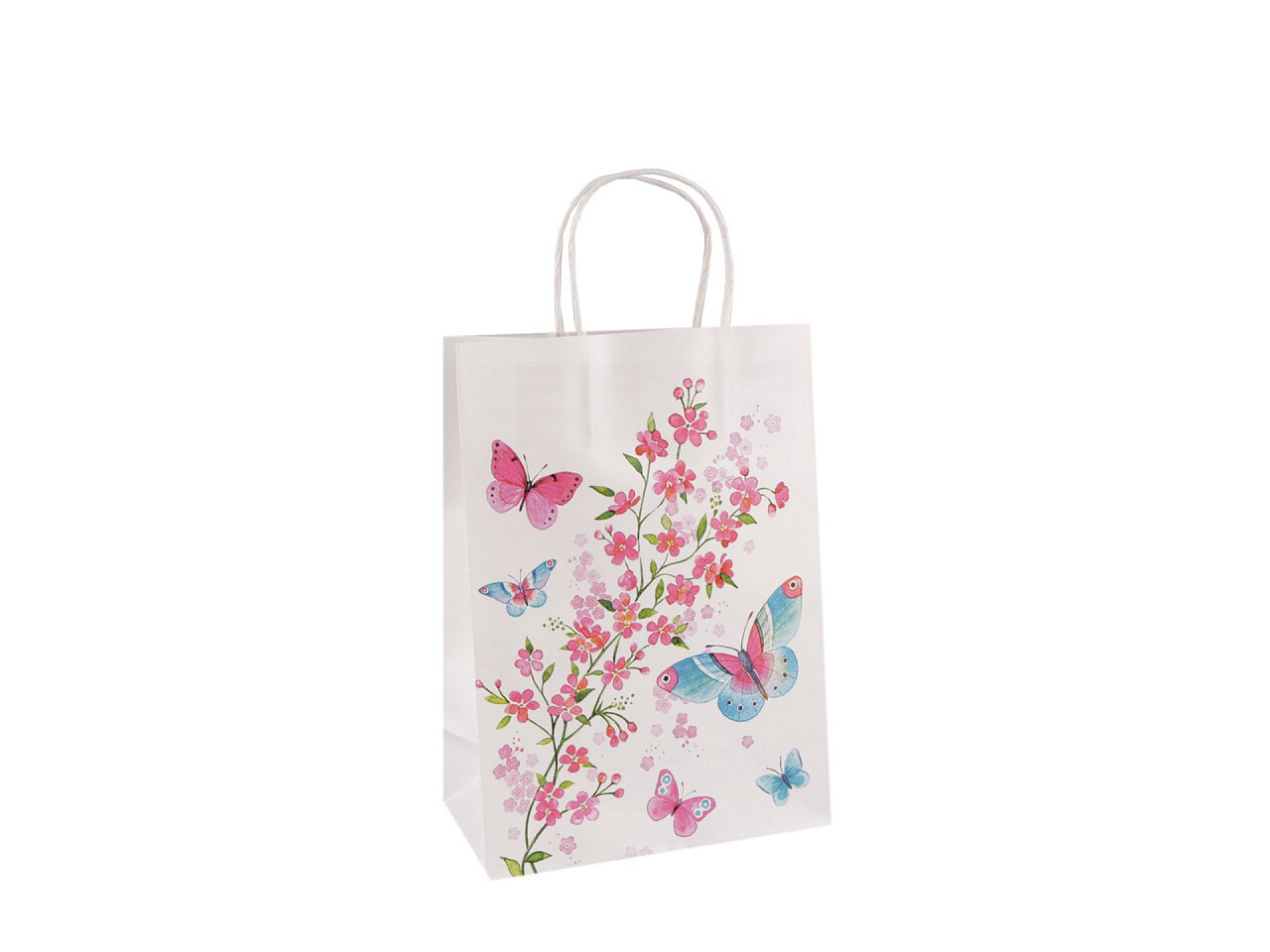 Dárková taška květy a motýli - 12 ks - 1 (15x21 cm) bílá