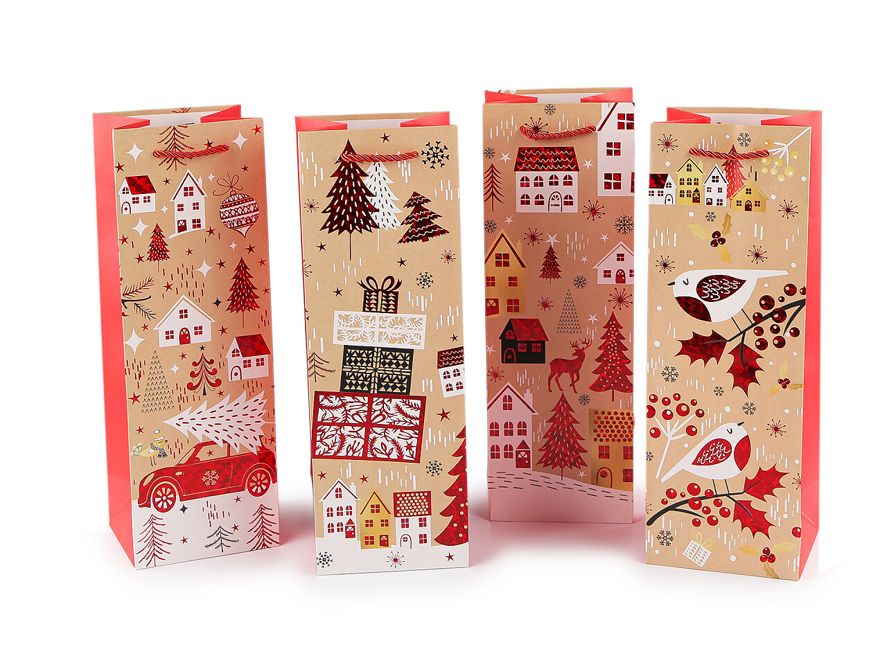 Sada vánočních dárkových tašek je určená na zabalení lahví a jiných podlouhlých dárků. Tašky jsou dostatečně vysoké, ať už se rozhodnete pro dárek s alkoholem nebo s domácí limonádou, tašky vám ušetří čas při balení. Jsou vyrobené z kvalitního pevného křídového papíru. Přední strana je ozdobená...