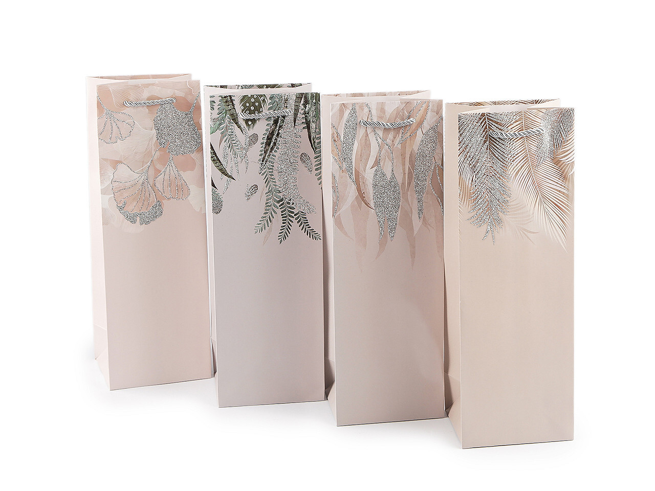 Sada elegantních dárkových tašek s rostlinnými motivy je určená na zabalení lahví a jiných podlouhlých dárků. Tašky jsou dostatečně vysoké, ať už se rozhodnete pro dárek s alkoholem nebo s domácí limonádou, tašky vám ušetří čas při balení. Jsou vyrobené z kvalitního pevného křídového papíru....