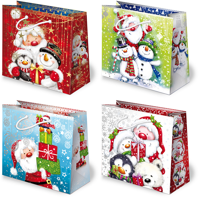 Torba świąteczna T3L op.10szt  stroiki i mikołaje wym.22,5x22,5x10