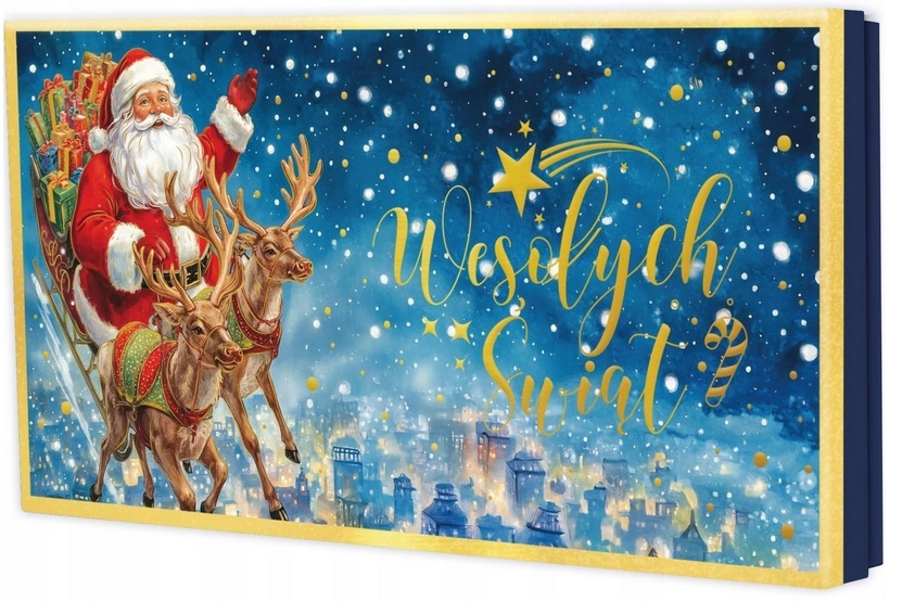 Pudełko prezentowe świąteczne, Mikołaj i renifery (22,5x12x3cm)