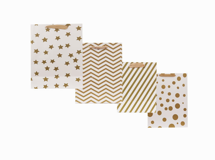 Dárková taška - Bílo zlatá s fólií/31x42x12 (mix)