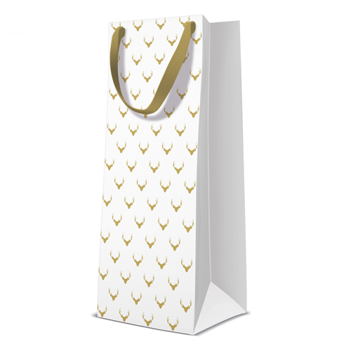Dárková taška PAW Premium Deer Antlers White, bottle - 12x37x10 cm