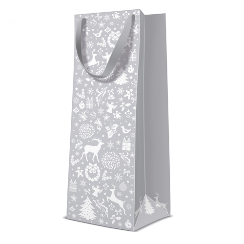 Dárková taška PAW Celebrate Christmas Silver, bottle - 12x37x10 cm