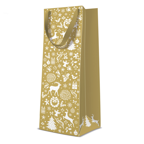Dárková taška PAW Celebrate Christmas Gold, bottle - 12x37x10 cm