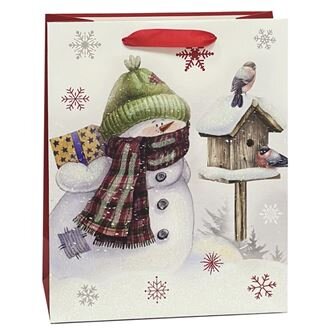 Dárková taška s motivem sněhuláka.Rozměry : 31 x 12 cm, výška 42 cm. Barva : kombinace bílá, červená, zelená, hnědá. Materiál : papír. przeczytaj całość