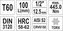Materiál byl podroben zkoušce tvrdosti pro tvrdé materiály podle Rockwella, s výslednou tvrdostí HRC58-62.