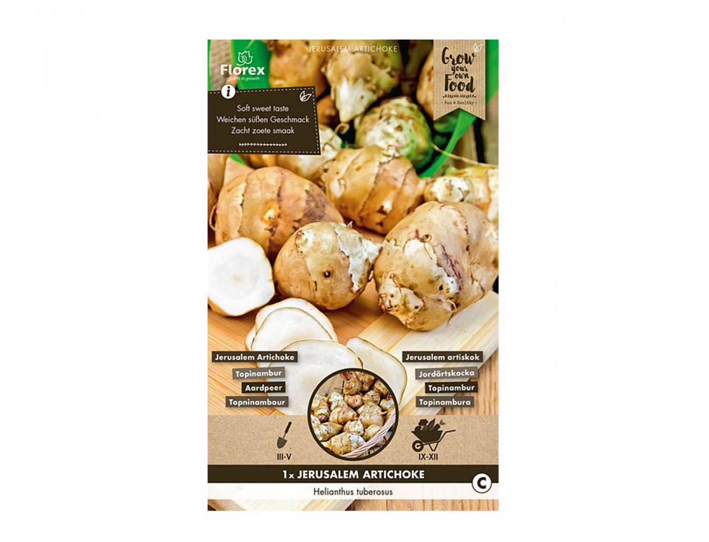 Topinambur má jedlé, bílé hlízy, které mají nepravidelný tvar. Vzhledem k obsahu přírodních cukrů je vhodný pro diabetiky. Chuť je mírně sladká. Topinambur sázíme na slunném, otevřeném místě do vlhké, úrodné půdy. Hlízy můžete sklízet od listopadu, mohou se konzumovat syrové, vařené nebo pečené...