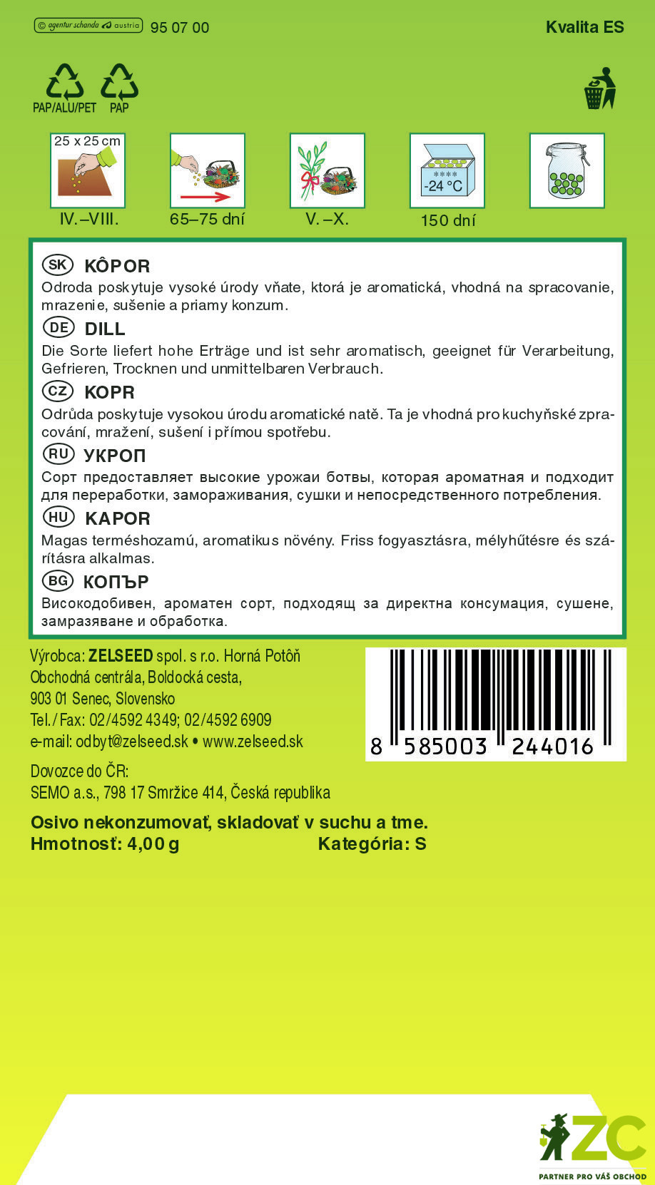 Kopr / Anethum graveolens L.Popis:Kopr je na pěstování nenáročná aromatická zelenina, mnohokrát se na zahrádce množící samovýsevem. Vyhovují mu hlinité, propustné a lehčí půdy s dostatečnou zásobou živin. Nesnáší půdy těžké a zamokřené, ani suché polohy a kamenité půdy. Je citlivý na hnojiva...