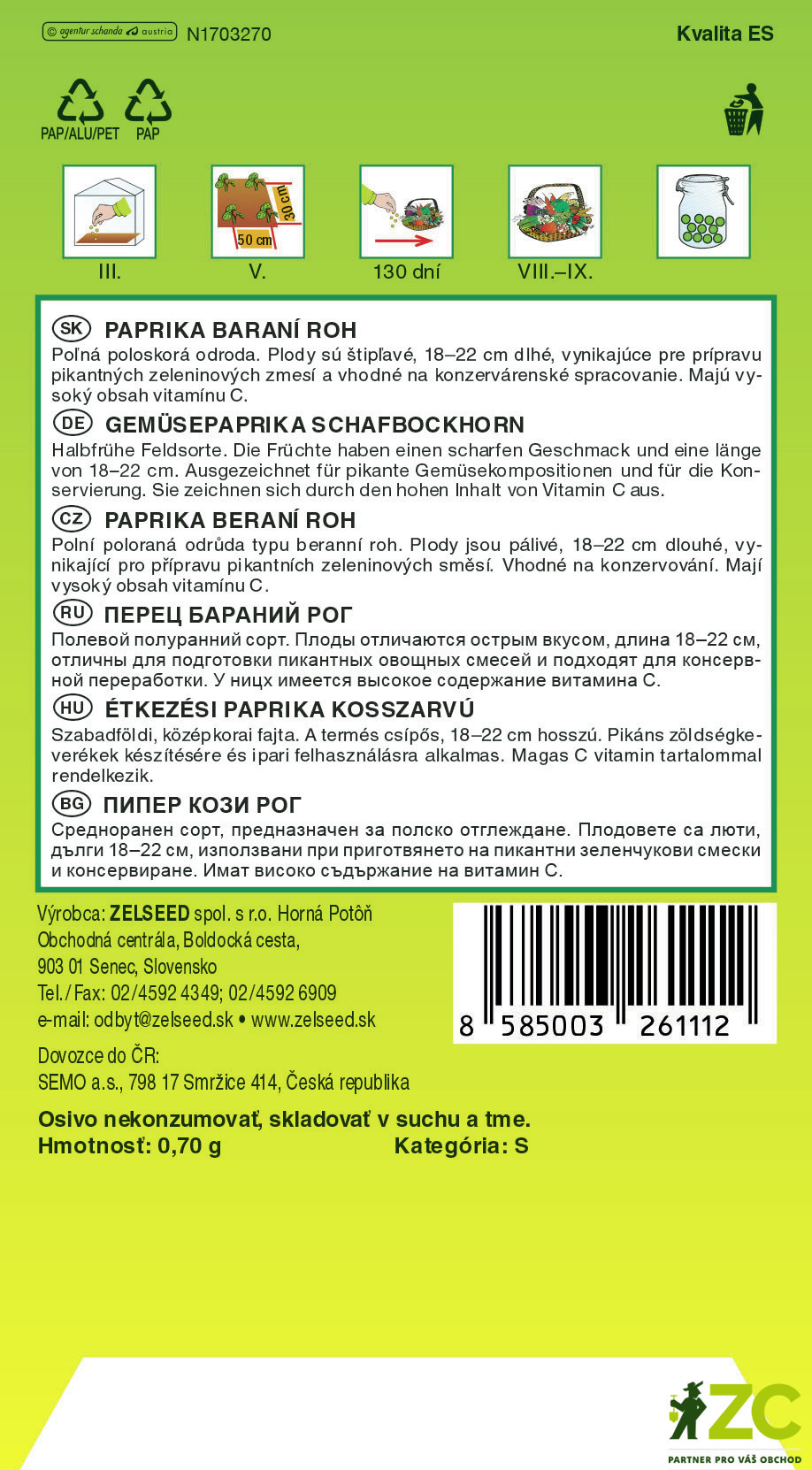 Zelseed Paprika zel. pálivá - Barkol beraní roh 0,7g
